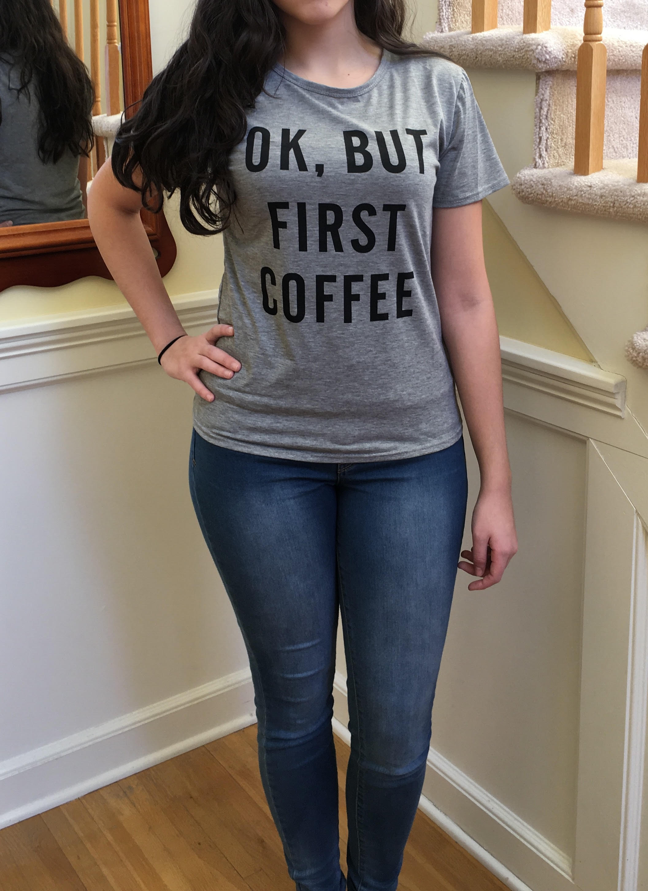 HOME - Ok, But First Coffee Top in grey