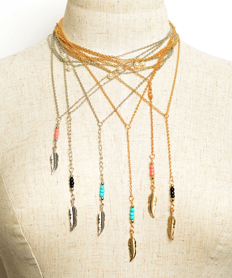 HOME - Feather Layered Necklace - Assorted Colors